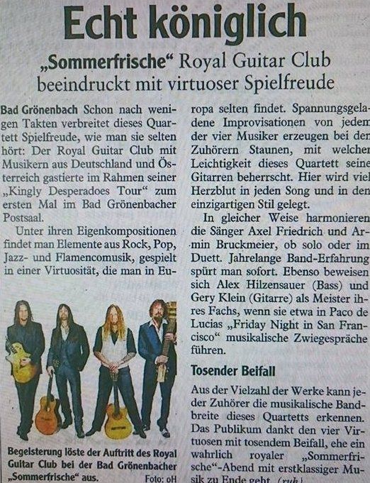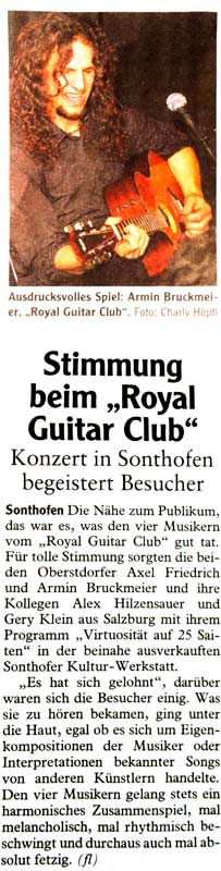 ... Royal Guitar Club sorgt für ausvekauften Auftakt in Bad Hindelang ... eine besonders beliebte Band fingerfertiger Gitarrenkünstler ...